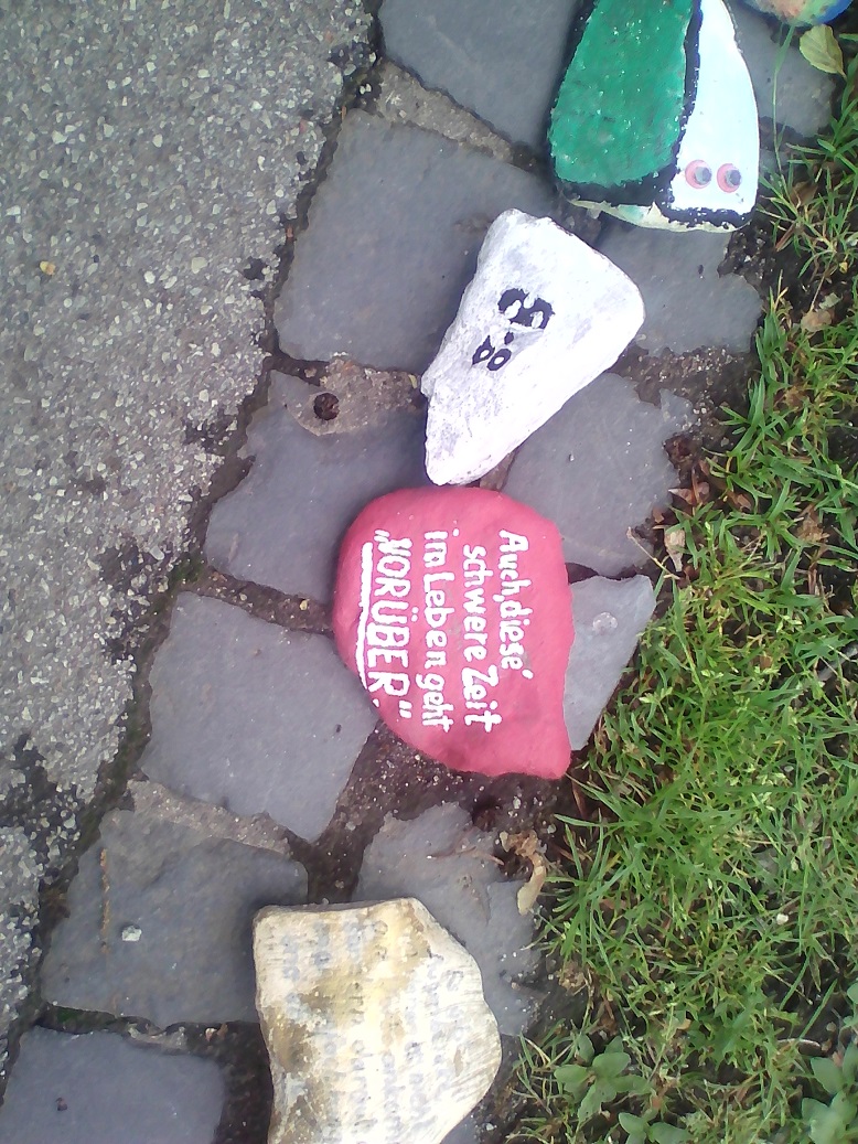 Gerade eben bin ich an einem Stein vorbeigegangen mit der Aufschrift: "DIESE SCHWERE ZEIT IM LEBEN WIRD AUCH VORÜBERGEHEN.."