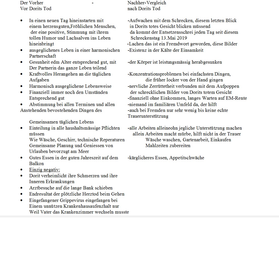 Meine Dorit sie wird nie wieder als Mensch in mein Leben, solange ich auf Erden weile, zurückkehren.