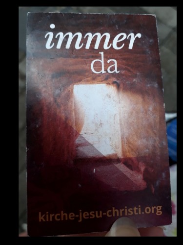 Es kam zu einem Gespräch, und der Kirchenvetreter reicht ihm ein Infokärtchen. Ich steckte es ein in meine Tasche und vergesse das Kärtchen.