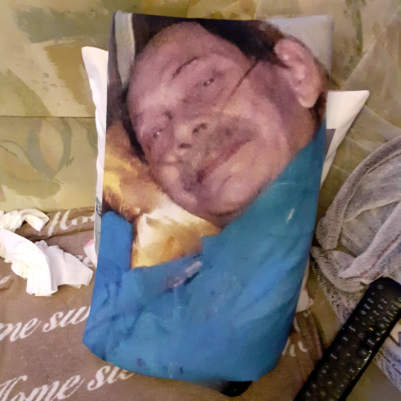 Ich habe viel Kissen mit Kopf und dem Körper meines Mannes und ein von meiner Tochter