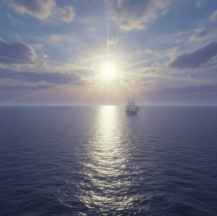 „Ein Schiff segelt hinaus und ich beobachte wie es am Horizont verschwindet.