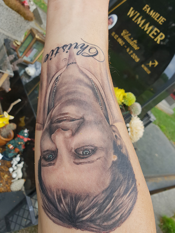 Wir haben auch ein Foto am Grabstein und ja, das ist wetterfest.