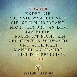 Warum wunderst Du Dich über die Länge und Tiefe Deiner Trauer? Du hast Deinen Mann genauso sehr geliebt und vermißt ihn jeden Tag, wie ich meinen Andreas. Beide kommen nun mal nicht wieder, und daran ändert sich ja auch nichts mehr. Trauer bedeutet Sehnsucht nach dem geliebten Menschen, und mich wundert eher wie man jemals sagen kann, ich habe die Trauer überwunden. Denn die Sehnsucht wird nie vergehen.