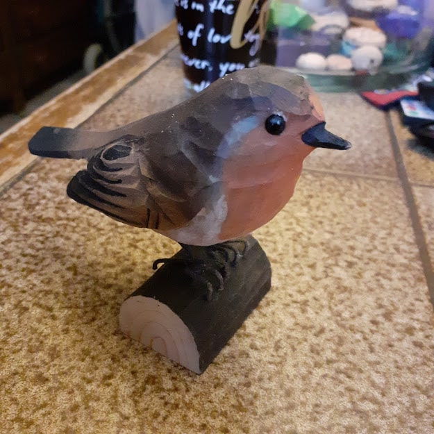 Das Bild oben ,ich habe mir ein Rotkehlchen gekauft und vor Helmuts Bild gestellt .